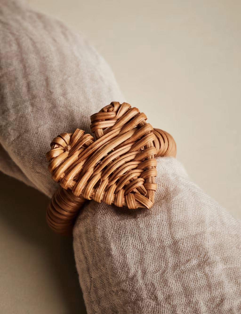 Fabric napkins folded neatly or tied with a satin ribbon add a personalised touch. Napkin rings made from materials like rattan, brass, pearl, or ceramic can complement your chosen theme. If you really want to embrace Valentine’s Day, you can even find heart-shaped napkin holders like these.